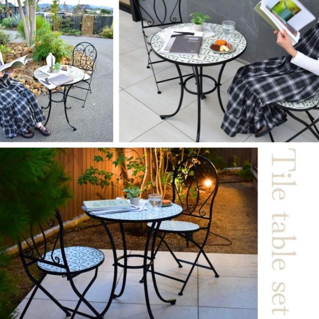 タイルテーブル 3点セット 直径60cm