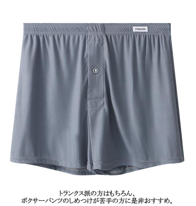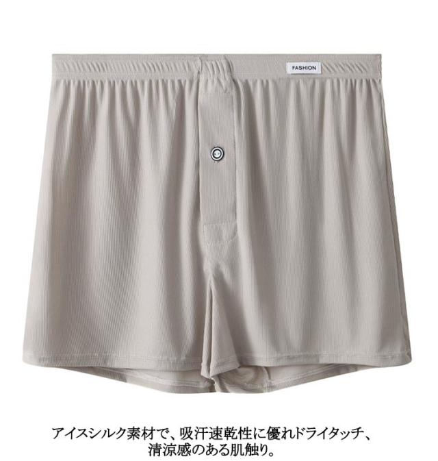 | 4枚セット!通気性抜群の素材で快適な履き心地のメンズトランクス! 柔らかく、ゆったりとした履き心地と、なめらかな肌触りで快適な着心地です 少し薄めの生地で抜群の通気性があり、暑い夏場に快適です。 アイスシルク素材で、吸汗速乾性に優れドライタッチ、清涼感のある肌触り。 トランクス派の方はもちろん、ボクサーパンツのしめつけが苦手の方に是非おすすめ。 | |
