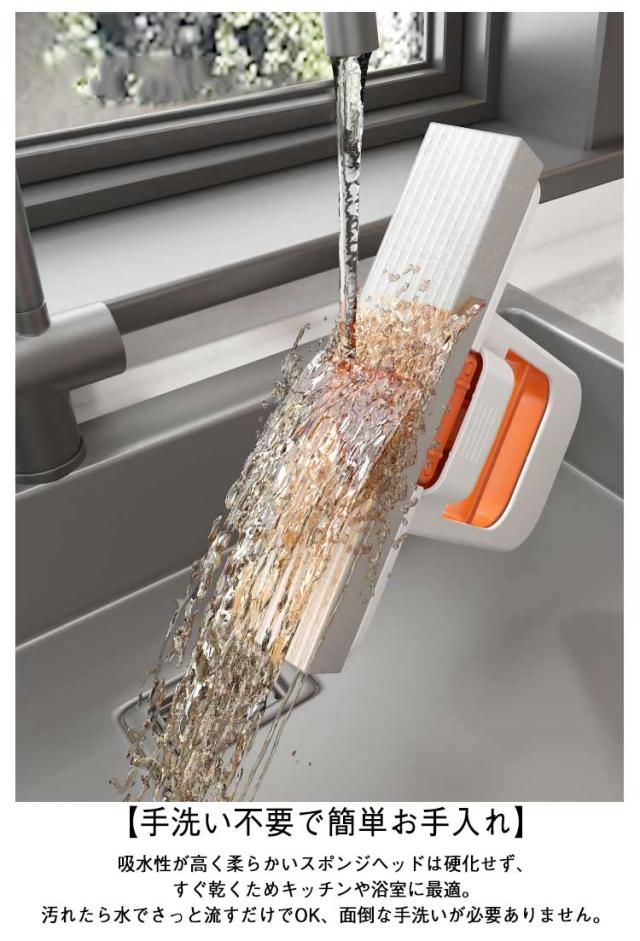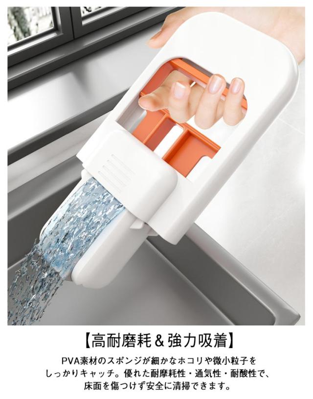 | 多機能折りたたみミニハンディモップ スポンジ5個付き! 【高耐磨耗&強力吸着】 PVA素材のスポンジが細かなホコリや微小粒子をしっかりキャッチ。優れた耐摩耗性・通気性・耐酸性で、床面を傷つけず安全に清掃できます。 【効率的な水拭き&乾拭き】 コンパクト設計のミニワイパーで水垢をサッと拭き取り。丸型プッシュプル式で、洗浄と脱水機能が一体化。高親水性PVAラバースポンジが髪の毛や細かいゴミまでしっかり除去します。 【床面保護設計】 特殊PVA素材が木製フローリングにも優しく、吸水性和軟性に優れています。使用面に密着して素早く水分を吸収し、跡残りなし。 【手洗い不要で簡単お手入れ】 吸水性が高く柔らかいスポンジヘッドは硬化せず、すぐ乾くためキッチンや浴室に最適。汚れたら水でさっと流すだけでOK、面倒な手洗いが必要ありません。 【マルチユースで家中活躍】 床掃除はもちろん、窓・壁・鏡・天井の水気拭きまで対応。スタンド式で収納もスッキリ、おしゃれな見た目で生活品位をアップさせます。 | |