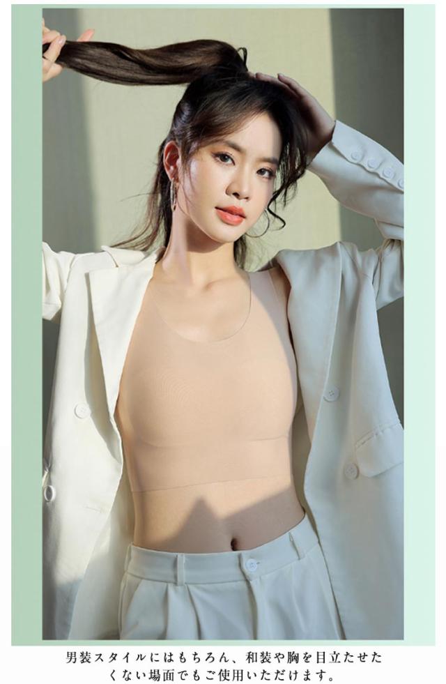 | ・胸を小さく見せるためのインナーです。 ・サラリとした軽い着心地 ・ノンワイヤーで、締めつけ感なく着用できるインナー ・男装スタイルにはもちろん、和装や胸を目立たせたくない場面でもご使用いただけます。 | |