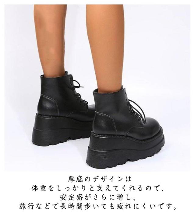 編み上げブーツ ブーツ 厚底シューズ レディース 厚底ブーツ ブラック ショートブーツ ハイヒール レディース 歩きやすい 黒 かっこいい 厚底靴 安定感 ワークブーツ 美脚 脚長効果 コスプレブーツ コスプレ靴 ハイカット 履きやすい 滑り止め