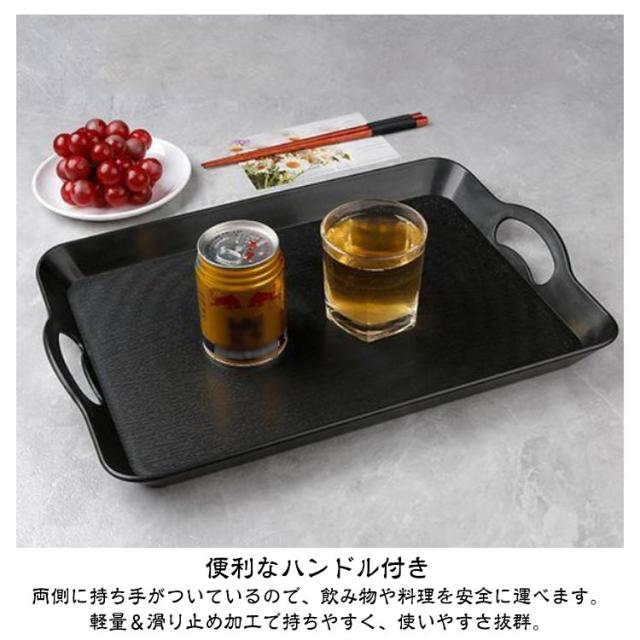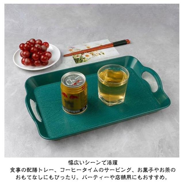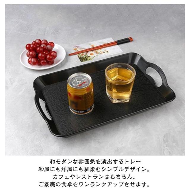| 【キッチントレー】【軽量&滑り止め】【ハンドル付き】 和モダンな雰囲気を演出するトレー 和風にも洋風にも馴染むシンプルデザイン。カフェやレストランはもちろん、ご家庭の食卓をワンランクアップさせます。 便利なハンドル付き 両側に持ち手がついているので、飲み物や料理を安全に運べます。軽量&滑り止め加工で持ちやすく、使いやすさ抜群。 幅広いシーンで活躍 食事の配膳トレー、コーヒータイムのサービング、お菓子やお茶のおもてなしにもぴったり。パーティーや店舗用にもおすすめ。 | |