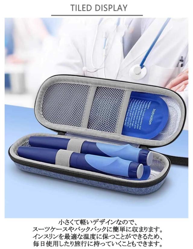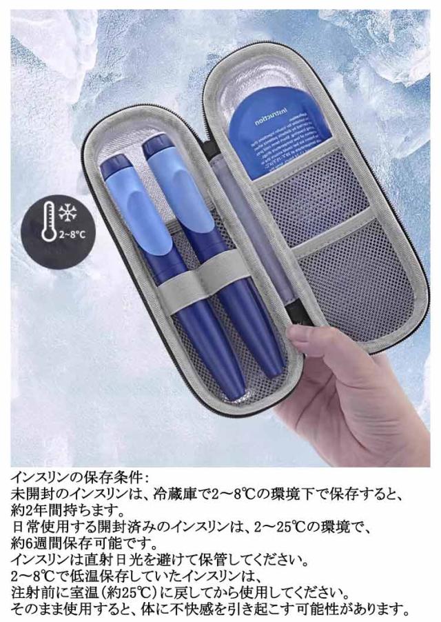 | 保冷剤2本付属します。インスリン保冷ケース。 小さくて軽いデザインなので、スーツケースやバックパックに簡単に収まります。インスリンを最適な温度に保つことができるため、毎日使用したり旅行に持っていくこともできます。 インスリンの効力を保護!アルミホイル層と保冷剤の組み合わせでインスリンの最適な温度を維持することができ、損傷や劣化を防ぎます。 大活躍!遠足、キャンプ、ハイキング、釣り旅行などでインスリンを冷たく保つことができます。 出張、通勤、旅行、外出する時にインスリン、注射用具、ワクチン、及び温度に厳しい医薬品の保管に役に立ちます。 インスリンの保存条件: 未開封のインスリンは、冷蔵庫で2〜8℃の環境下で保存すると、約2年間持ちます。 日常使用する開封済みのインスリンは、2〜25℃の環境で、約6週間保存可能です。 インスリンは直射日光を避けて保管してください。 2〜8℃で低温保存していたインスリンは、注射前に室温(約25℃)に戻してから使用してください。 そのまま使用すると、体に不快感を引き起こす可能性があります。 | |