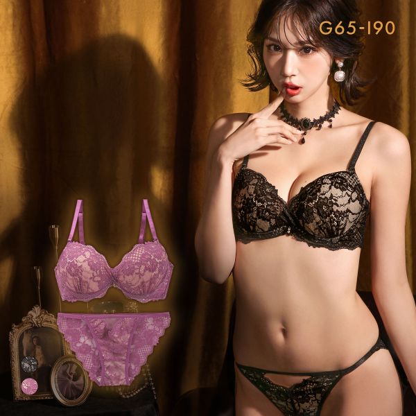 エレガント 脇肉を谷間に変える脇高ブラ グラマラスレーシー ブラセット GHI65-95 きいサイズ グラマー 盛り胸 寄せ上げ ブラジャー ショーツ