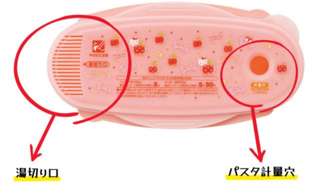●パスタ計量穴と湯切り口がついています。