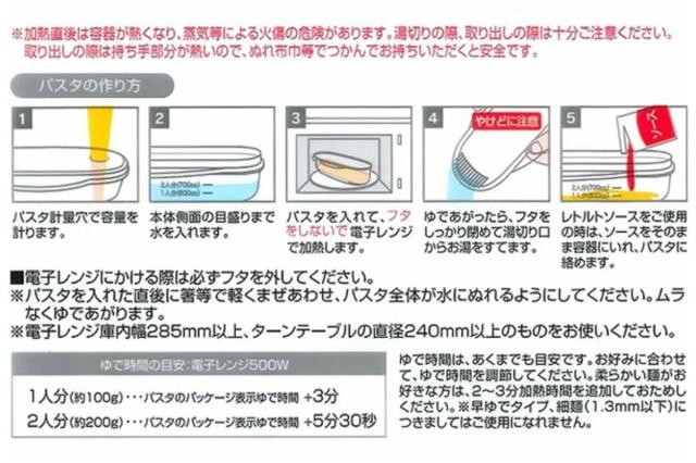 ●電子レンジで簡単にパスタが茹でられる調理ケースです。