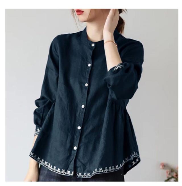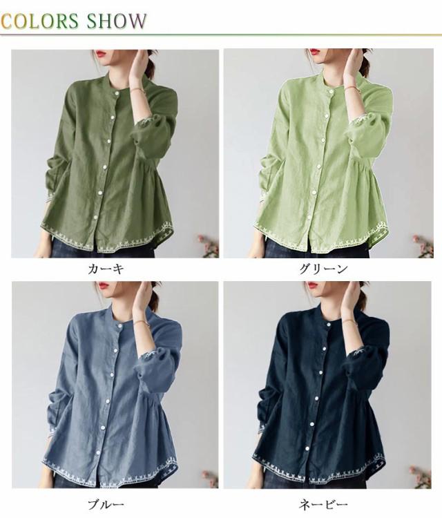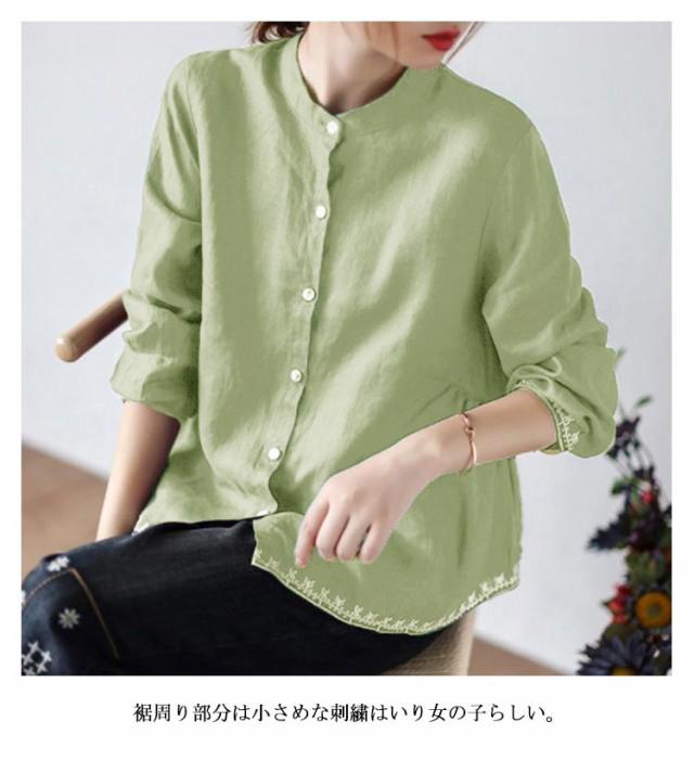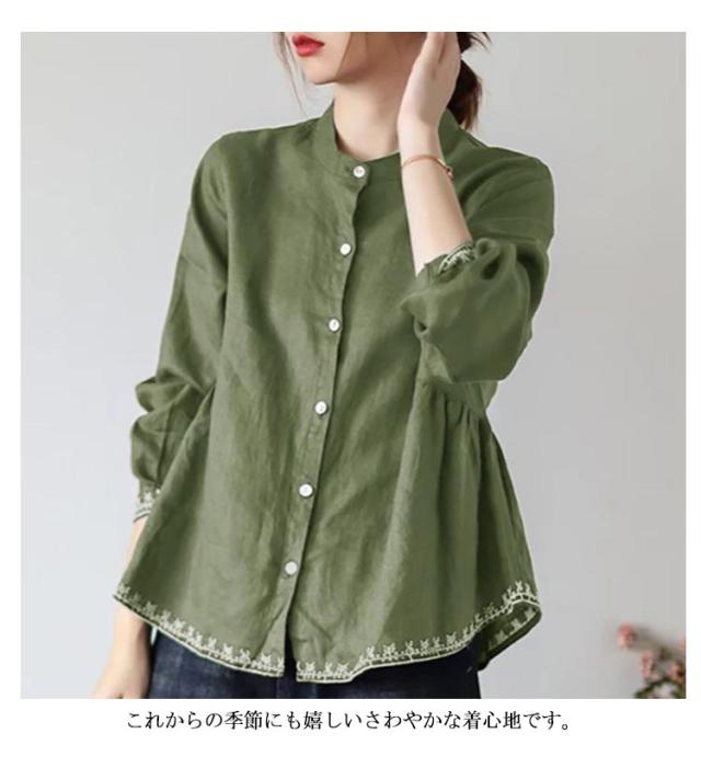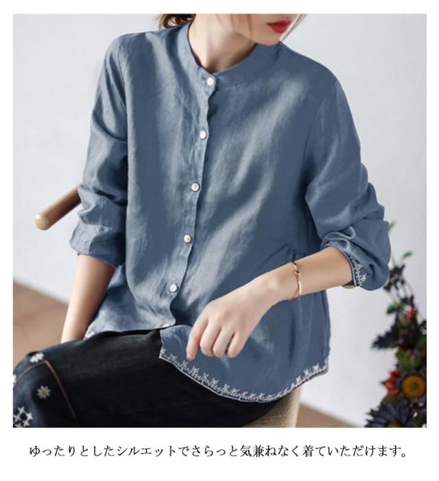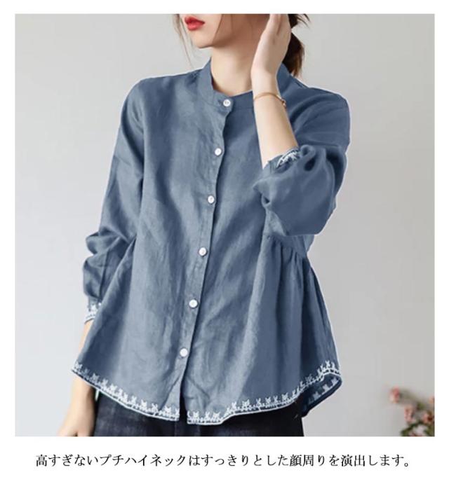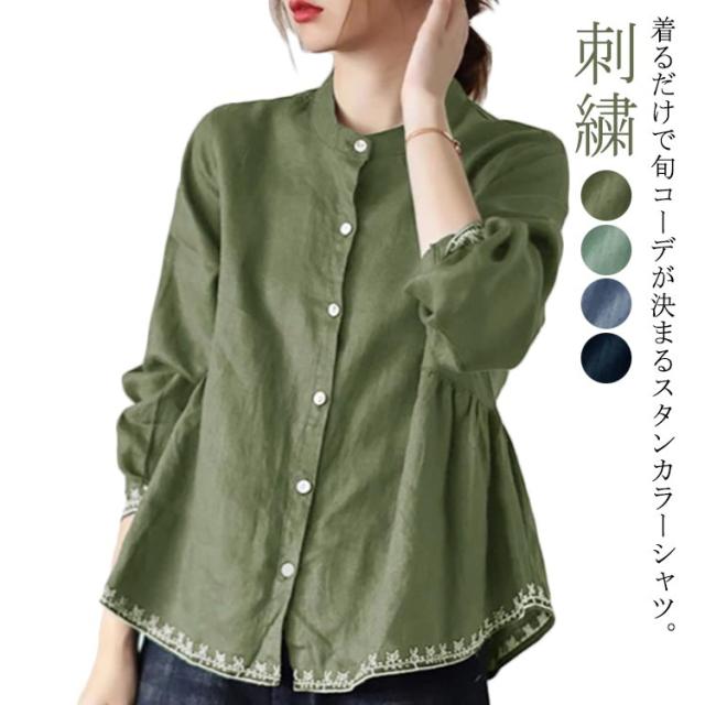 チュニック シャツ ブラウス レディース 刺繍 スタンドカラー Aライン 長袖 ゆったり 体型カバー 春 秋 可愛い 立ち襟 30代 40代 送料無料
