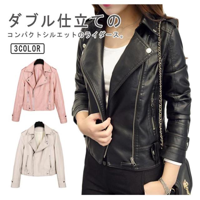 ライダースジャケット ダブル レディース レザージャケット ショート丈 コンパクト ライダース フェイクレザー ジャケット ピンク 白 黒 レザー風 ブルゾン 秋アウター 秋冬 革ジャン バイクジャケット ミリタリー カジュアル ホワイト 大きいサイズ