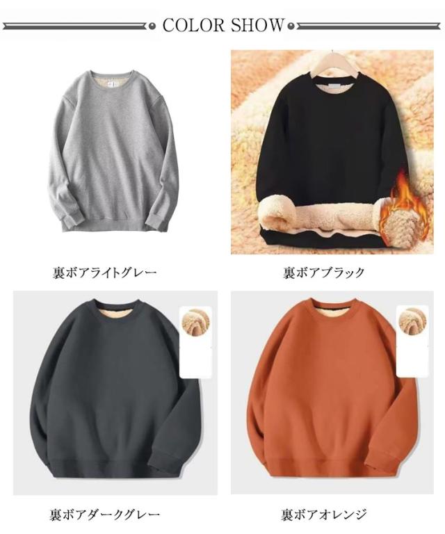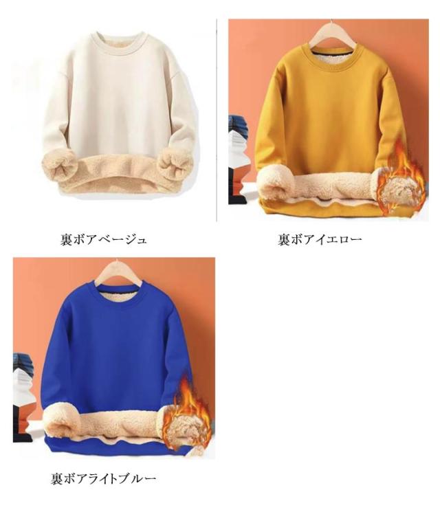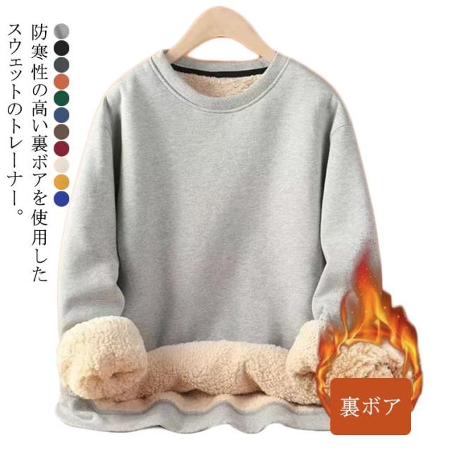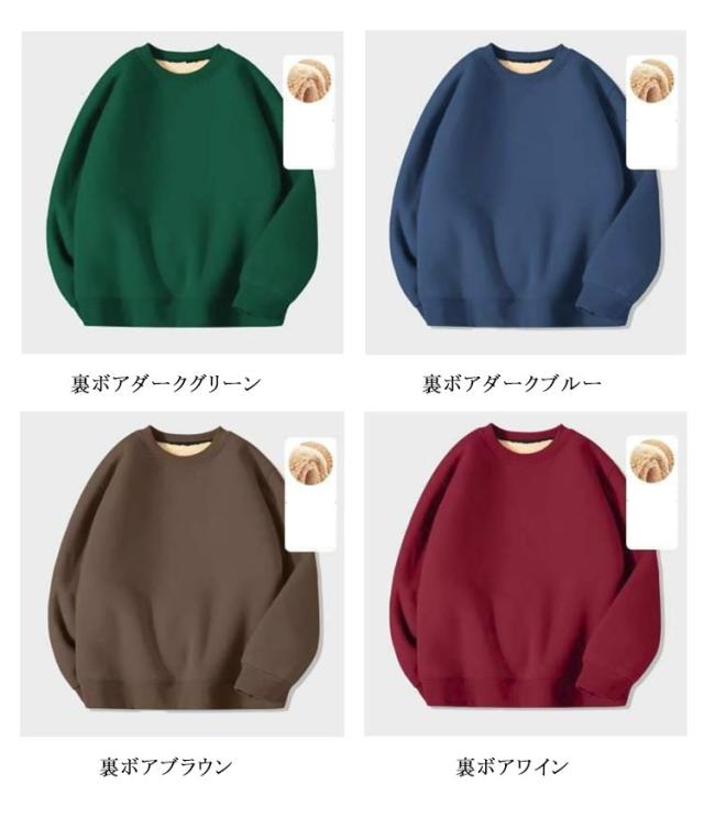 無地 レディース 裏ボア メンズ 裏起毛 厚手 防寒 トレーナー 大きいサイズ パーカー 丸首 おしゃれ クルーネック シンプル トップス 暖かい あったか 長袖 長袖 裏ボア 男女兼用 ユニセックス 秋 冬 冬服