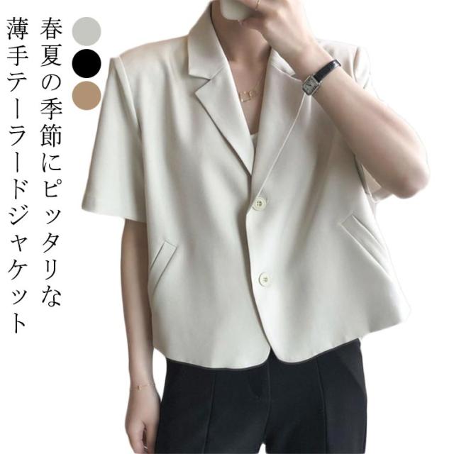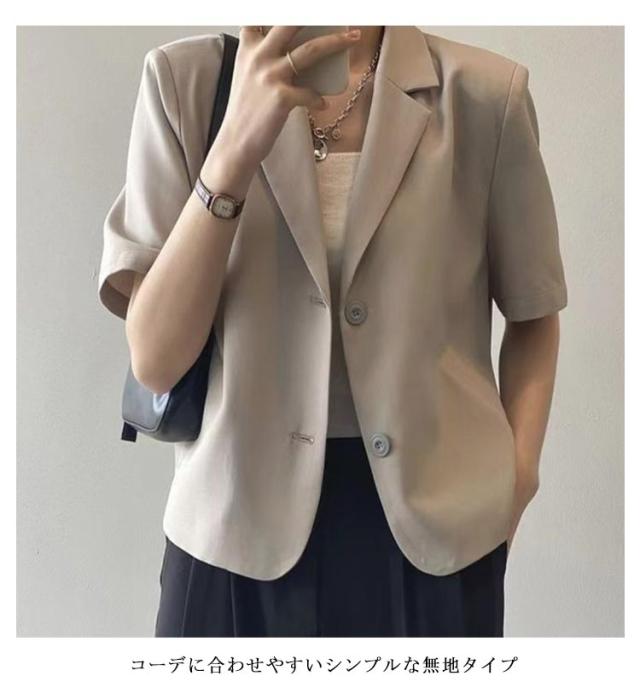 半袖 秋 ジャケット ショート丈 夏 羽織り レディース UVカット アウター コート トップス 着回し力 テーラードジャケット レディース 紫外線対策 着痩せ 体型カバー シンプル カジュアル おしゃれ 裏地無し