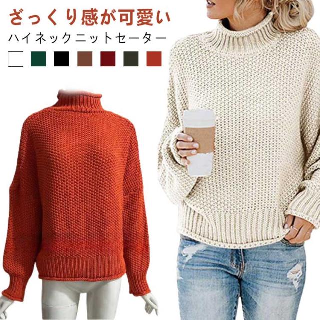 長袖 タートルネック ローゲージ ハイネック ざっくり編み オーバーサイズ ニット セーター ローゲージ 体型カバー 大きいサイズ レディース 秋 冬 ハイネック ドロップショルダー