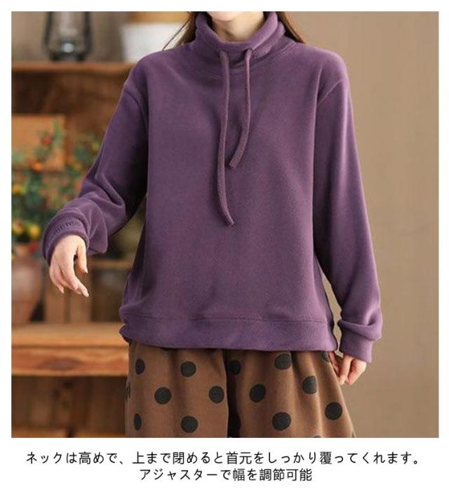 レディース ボア トレーナー パープル ボア マイクロフリース フリース プルオーバー ボアフリース トップス カットソー tシャツ 長袖トップス ファー ふわふわ 秋 冬 ルームウェア ブラウン ハイネック ワインレッド キャメル