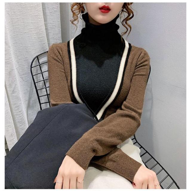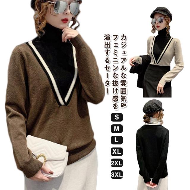 ニットセーター ニット スリット タートルネック レディース ニット 無地 リブニット リブ ハイネック ストレッチ 冷え取り トップス タートル きれいめ 細かい 厚手 長袖 レイヤード ビッグシルエット 重ね着 プルオーバー 秋 冬 お洒落 通勤