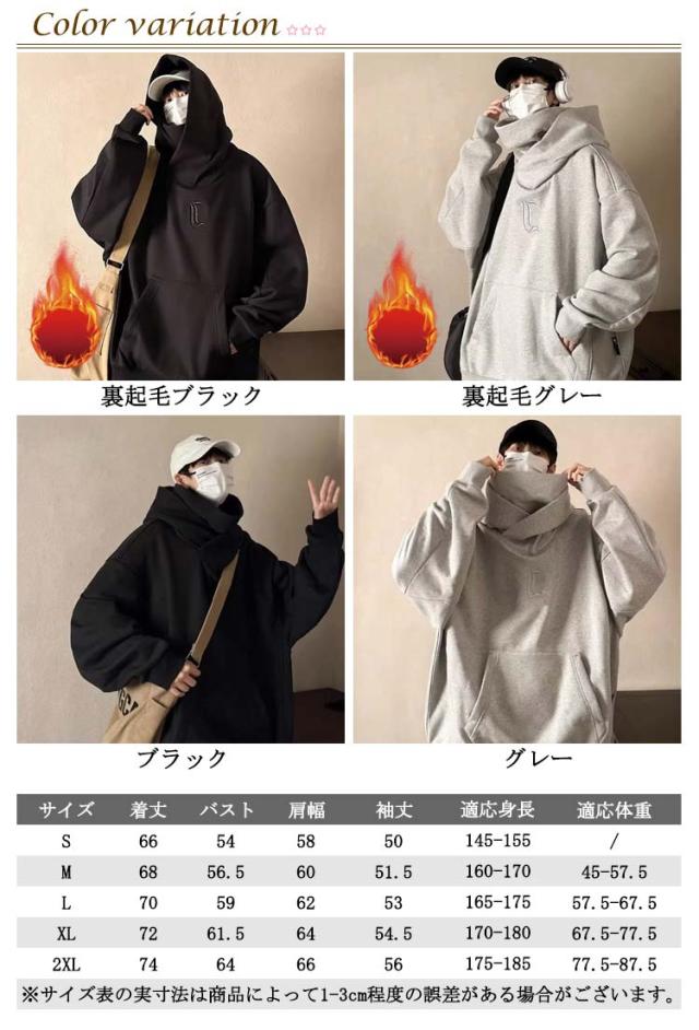 男女兼用 ボリュームネックパーカー メンズ 防寒 春 フード付きパーカー 保温 男女兼用 裏起毛 冬 秋 オーバーサイズ ハイネックパーカー スウェット スエット 無地 タートルネック ハイネック 機能的 ゆったり ストリート系 ヒップホップ お兄系 個性的 モード系