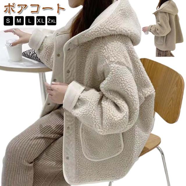パーカー ブルゾン ボアアウター 秋 ボア ベージュ アウター ボアコート コート 大きいサイズ ドロップショルダー ボアアウター ボアジャケット ボアパーカー 冬 小顔 もこもこ 羽織り フード 無地 あったか 防寒 ゆったり