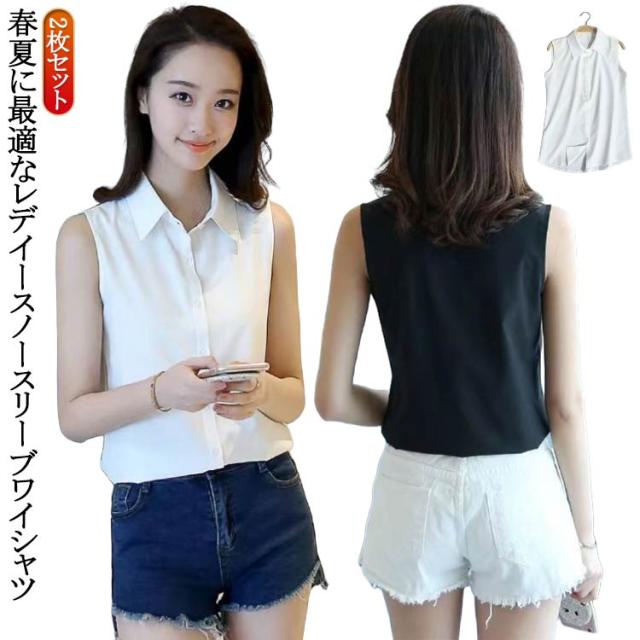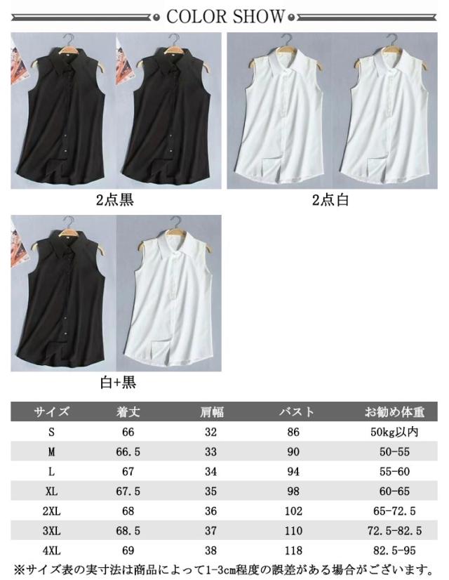 2枚セット 襟付き ブラック ブラウス レイヤード 襟付き タンクトップ 大きいサイズ シフォンシャツ ブラウス シャツブラウス インナー レディース スーツ 白 Yシャツ ノースリーブ 黒 秋 冬 春 夏 タンクトップ 通勤 OL 無地 袖なし