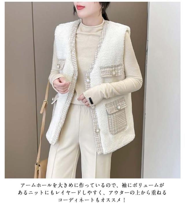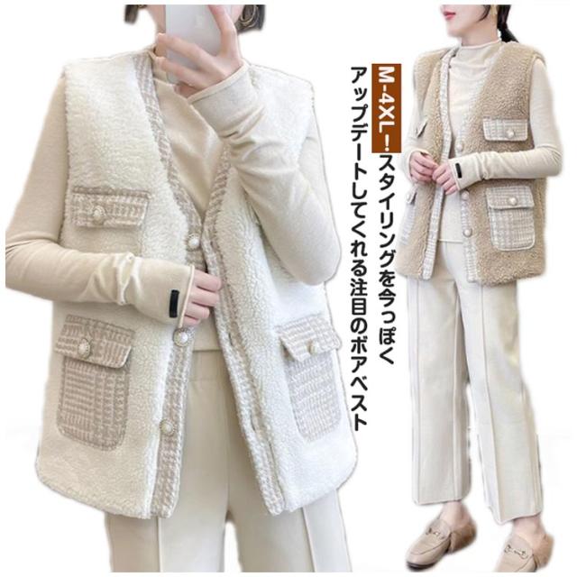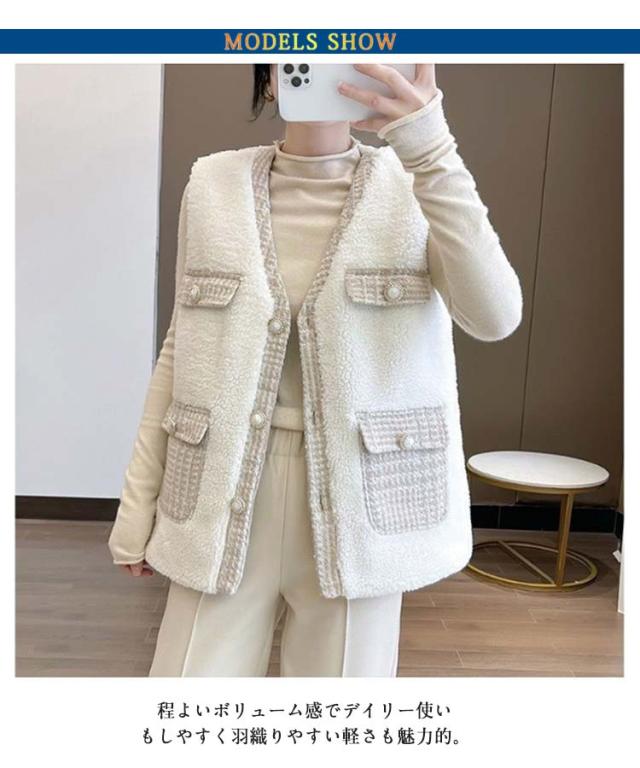ボアベスト ベスト ボア 裏起毛 もこもこ 裏フリース ノースリーブ ジャケット アウター ベスト 裏ボア リバーシブル 保温 アウター 秋冬 防寒 ムートン ロング 秋 冬 トップス ジレ ムートン調 前開き ノーカラー おしゃれ きれいめ カジュアル