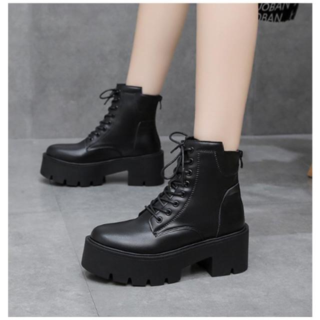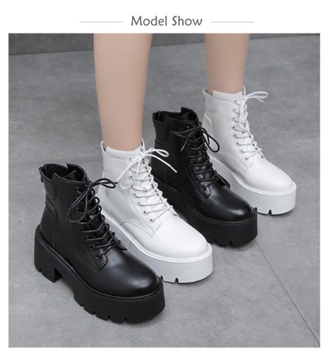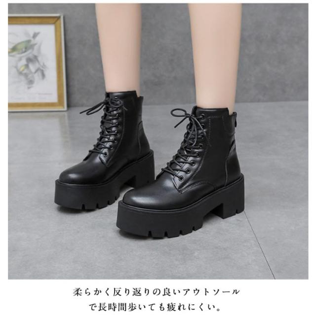 ブーツ 厚底ブーツ ヒール7cm レディース ワークブーツ 厚底ブーツ ショートブーツ レースアップブーツ 身長アップ かわいい 靴 太ヒール 秋ブーツ 履きやすい 歩きやすい 痛くない 柔らかい 編み上げブーツ 秋 冬 ハイヒール ブラック ホワイト 白