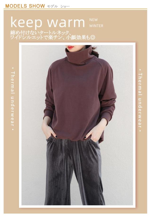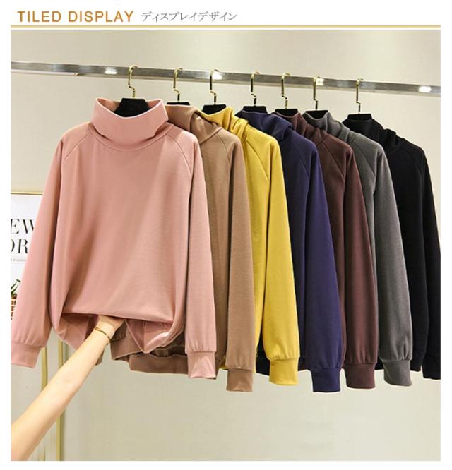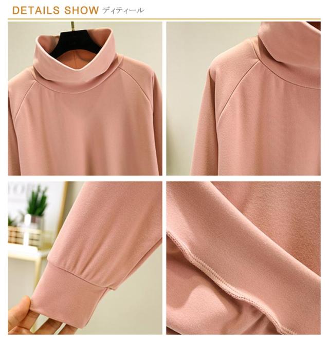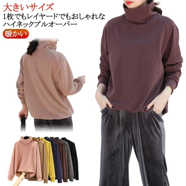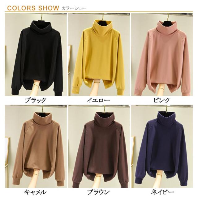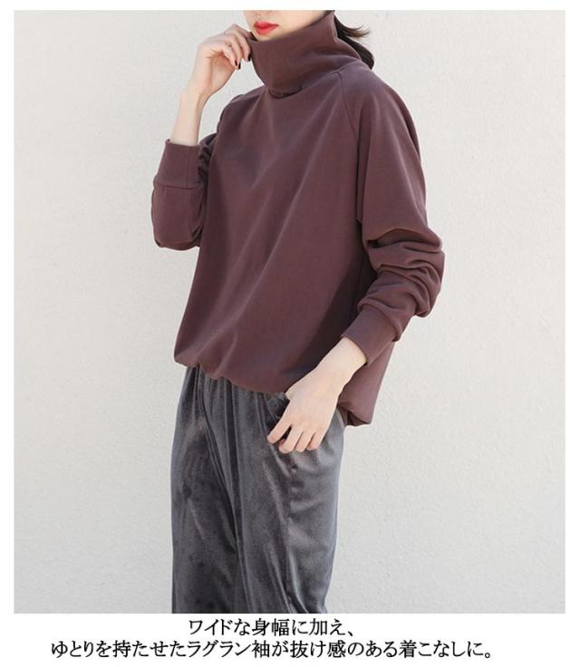 首ゆったり タートルネック カットソー 柔らか ハイネック レディース 暖かい 冬 トップス インナー 秋 スエット ラグランスリーブ 首ゆったり スウェット カジュアル 送料無料 ビッグサイズ 体型カバー