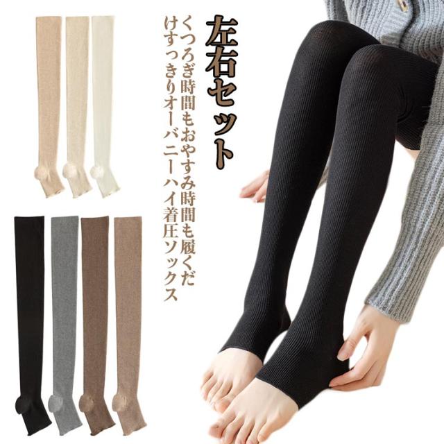オーバーニー オーバニーハイソックス 着圧ソックス 加圧 綿 オープントゥ リブ ストレッチ ソックス 引き締め ニーハイソックス むくみ ふくらはぎ ソックス コットン オーバニーハイソックス 靴下 対策 あったか 保温 秋