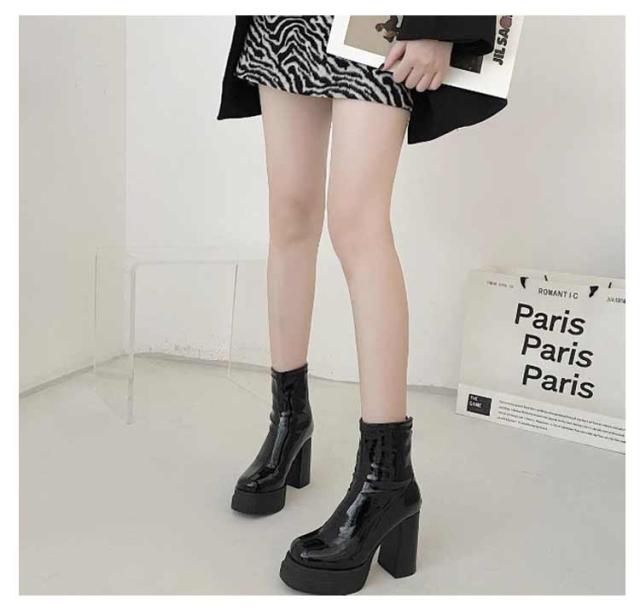 チャンキーヒール 太ヒール 厚底 10cmヒール 袴 美脚 レディース バックジップ 厚底ブーツ プラットフォーム ショートブーツ 脚長 痛くない ストーム 歩きやすい きれいめ おしゃれ 秋
