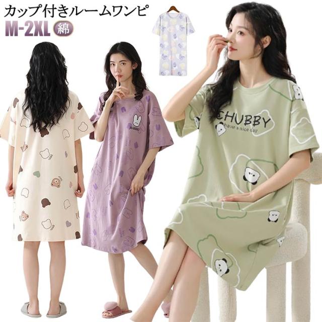 レディース 大きいサイズ ワンピース 綿 ロング ゆったり 薄手 レディース 半袖 大きいサイズ パジャマワンピース ルームウェア パジャマ ブラカップ付き コットン 綿 ロングTシャツワンピース コットン 部屋着 おしゃれ かわいい シンプル 春 夏 秋