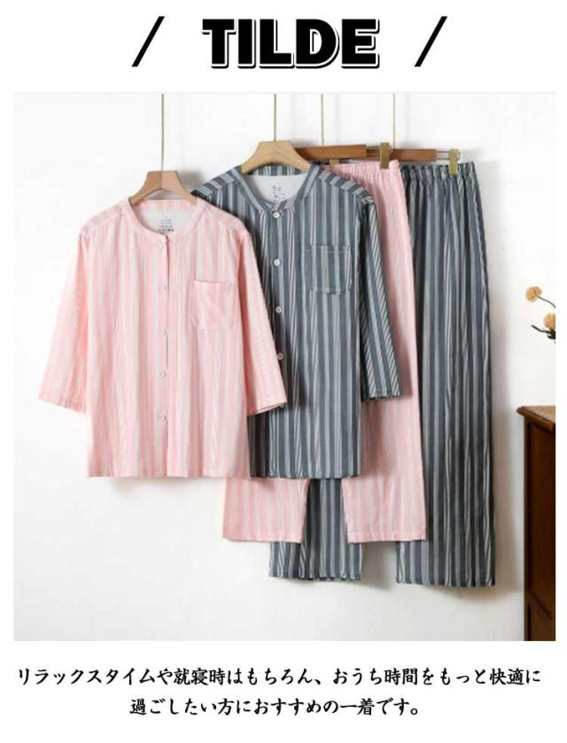 レディースパジャマ パジャマ コットン コットン 秋 7分袖 2重ガーゼ メンズ 綿 やわらか 夏 パジャマ 着心地 春 7分袖 綿 上下セット ガーゼ ハート柄 可愛い シンプル ルームウェア セットアップ 前開き 二重ガーゼ パジャマ