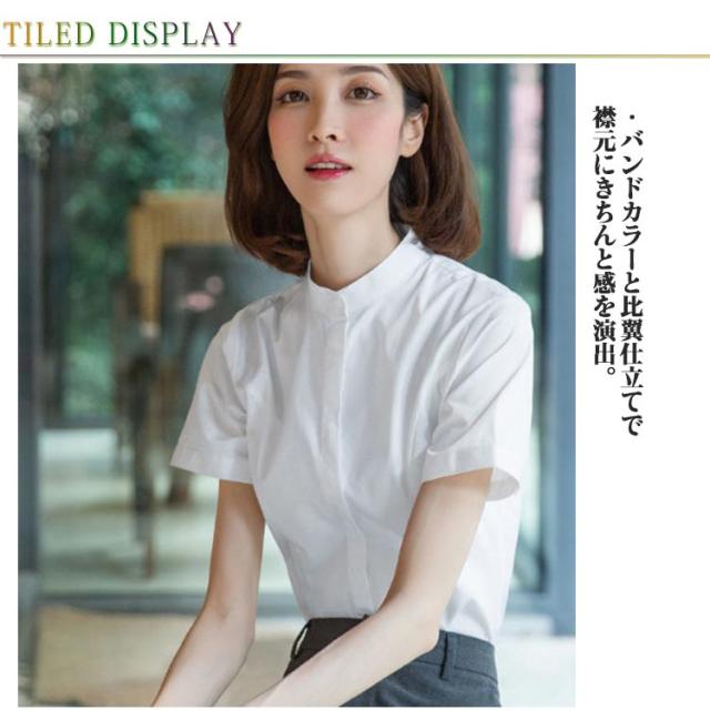 フォーマルシャツ おしゃれ フォーマルシャツ レディース 制服 バンドカラー 長袖 大きいサイズ ワイシャツ ビジネスシャツ 半袖 フォーマル ビジカジ オフィスカジュアル 事務服 OL オールシーズン 春 夏 秋