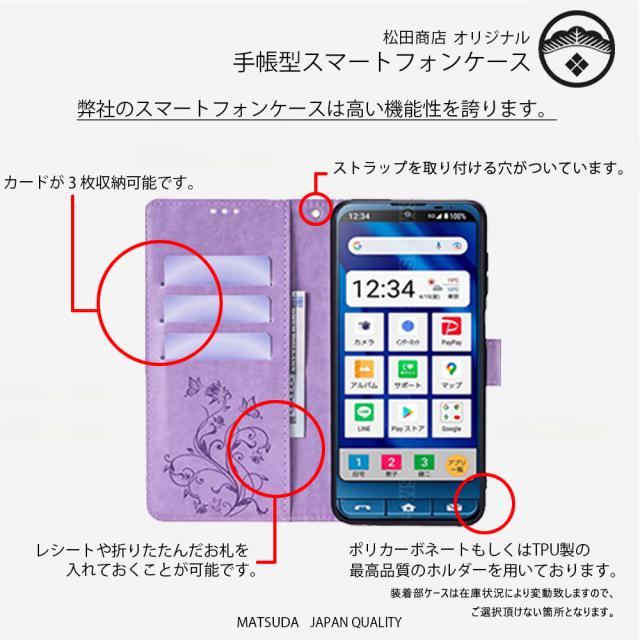 | 特徴 | 1.カメラホール ・カメラホール、指紋認証ホールなどに一点ずつ手作業で塗装し、コーティングしております。・手帳型ケースは厚みがあるため、スマホをテーブルや床おいてもレンズなどを傷つけません。 2.ケースのまま充電 ・QIワイヤレス充電に対応しておりますので、ケースのままワイヤレス充電が可能です。※機器の種類によりましては使用できません。 ・手帳型ケースを装着したまま、充電やイヤホンをすることがかのです。 ・写真撮影時にもケースをしたままお使いいただくことができます。 3.ストラップホールあり ・上側に一つストラップホールがあるので、普通ストラップ、ネックストラップやチエーンの装着が可能です。 4.カード収納 ・クレジットカード、または紙幣やレシート、定期、ポイントカード、名刺などが入れられる便利なポケット付き。 ※機種によってカード収納枚数が異なります。 ※本体の磁気の影響により、交通ICカードは使用できない場合はございます。 5.マグネット内蔵 ・マグネットが内蔵されているので、ケースをしっかりと固定することができ、バッグの中でも開く心配がありません。 6.操作簡単 ・手帳型カバーを装着したまま、イヤホンや充電などをすることが可能です。 | |||||