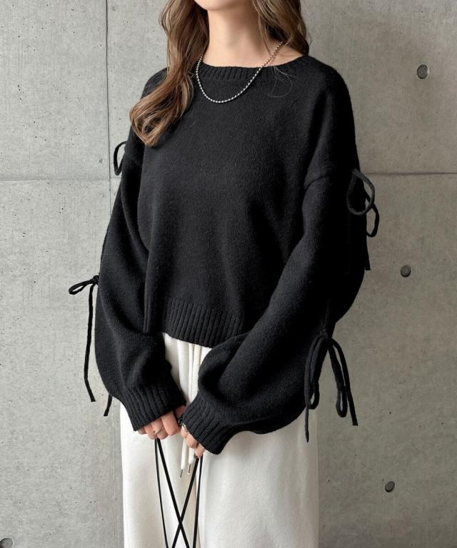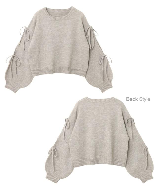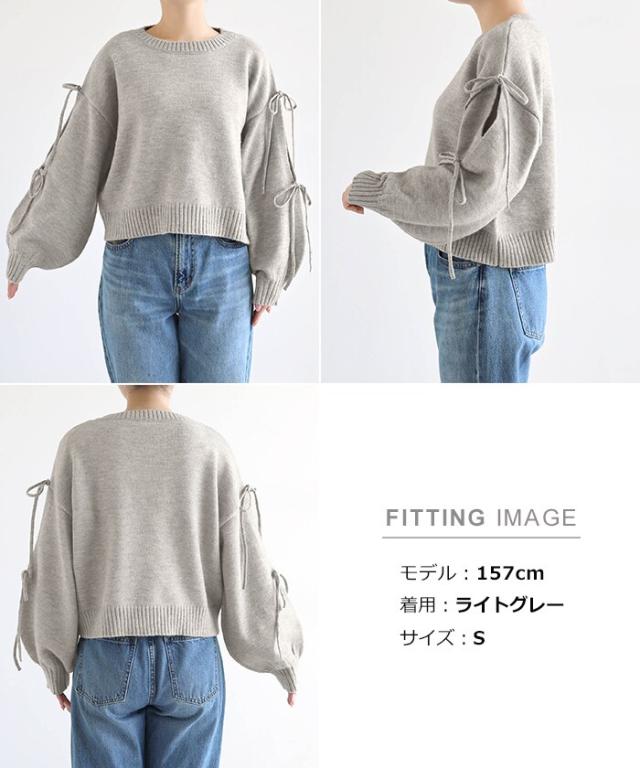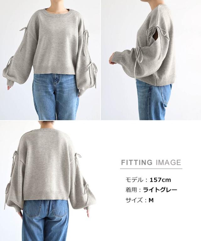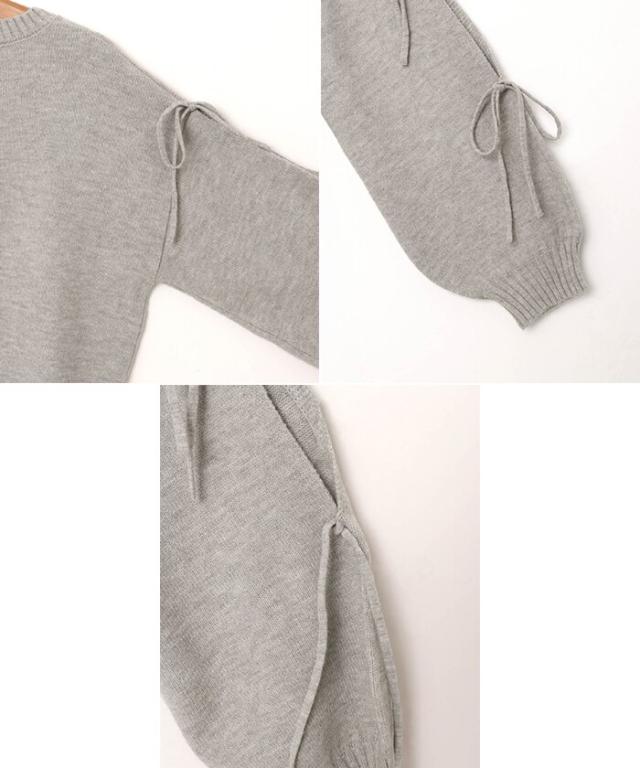 アンドミー(andme)/袖スリット リボン 長袖 ニット トップス