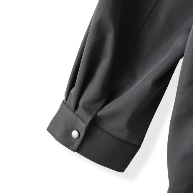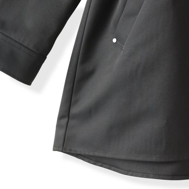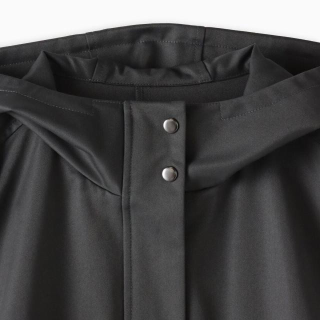 ややしっかりとしたタフタ素材は、軽さを保ちながらも適度なハリがあり、撥水・撥油の機能性を備えた頼れる一着です。