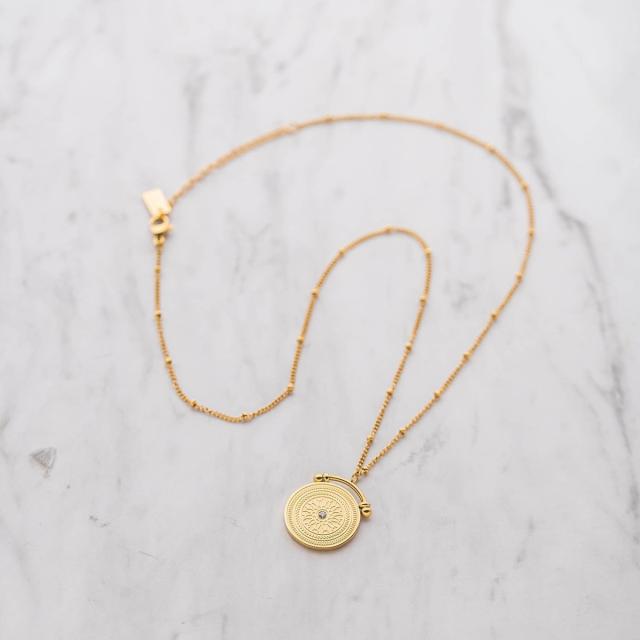繊細なドットチェーンに、立体的なコインモチーフを添えた、ロングネックレス。