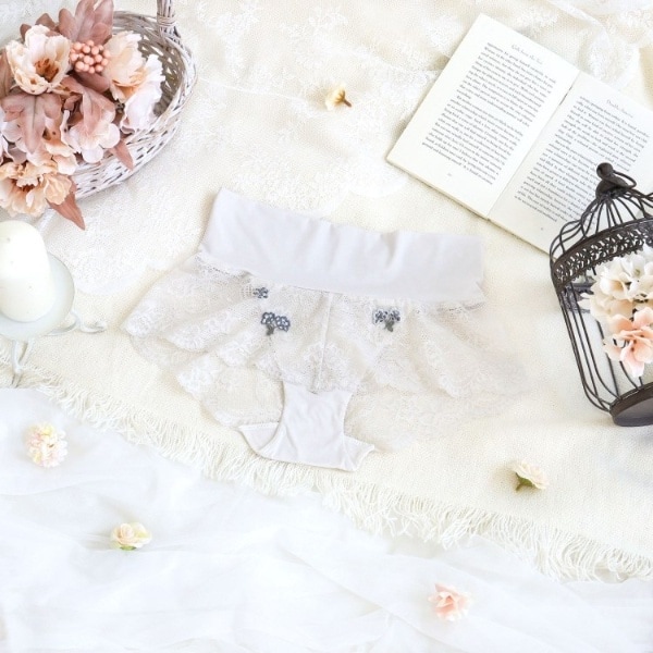 レースを贅沢にあしらった、さらりとした気持ちの良い履き心地です。ウエストにはゴムを使用せず袋縫いにすることで、締め付け感がなくストレスフリーにご着用いただけます。クロッチ部分にも同じ伸縮性のあるなめらかな素材を使用しました。敏感な肌の方にも安心してご着用いただけるよう、フロントレースの裏打ちに綿混を使用するこだわりも。履き込みは深く安定感があり、ゆとりのある作りで就寝時やリラックスタイムにおすすめです。