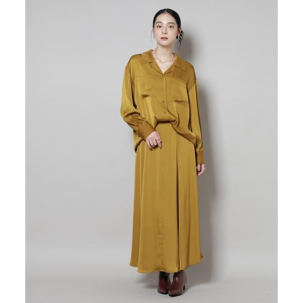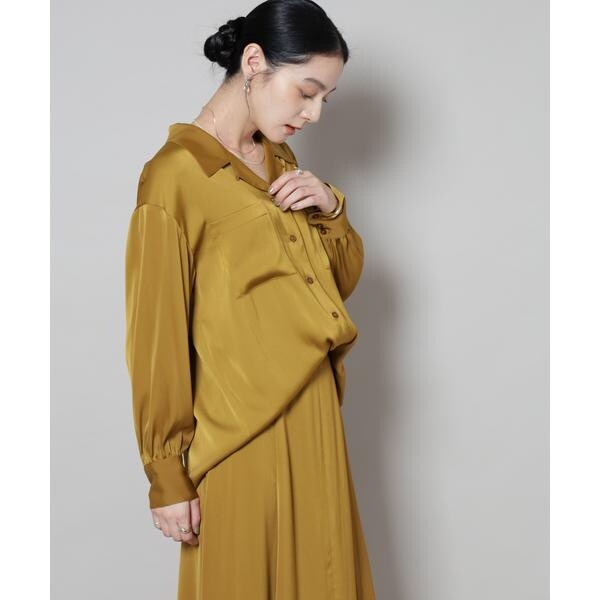 サテンオープンカラーシャツ(セットアップ可)