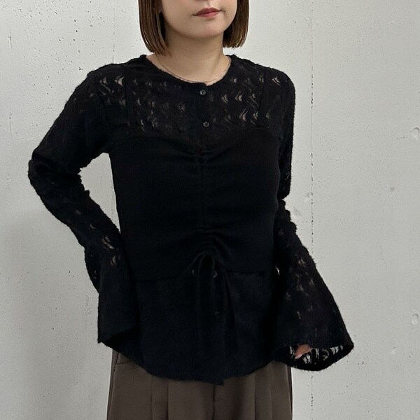 起毛感のあるレースブラウスは、軽やかな薄手素材ながらふわっと柔らかい質感が魅力。