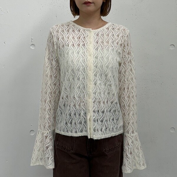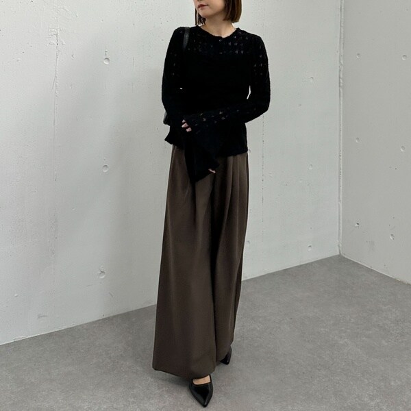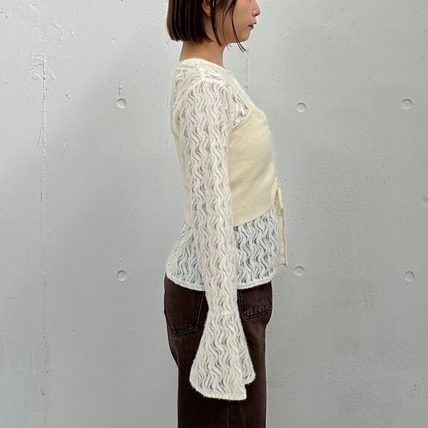 ほどよい透け感が女性らしさを引き立て、ベルスリーブが腕をすらりと見せてくれます。