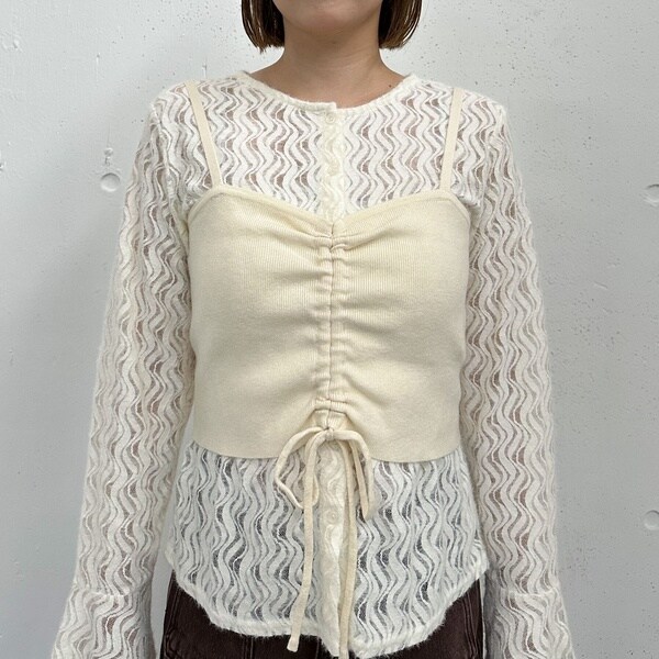 ニットビスチェx起毛レースブラウスSET