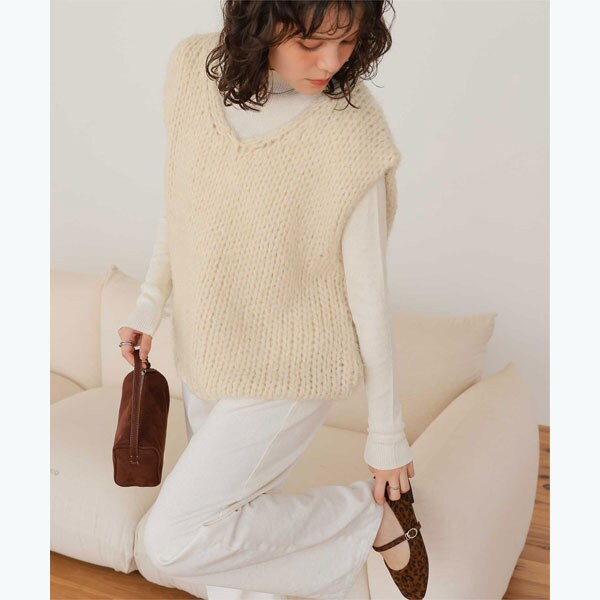 ・ざっくり、ふわっと編んだニット素材が特徴的なニットベスト