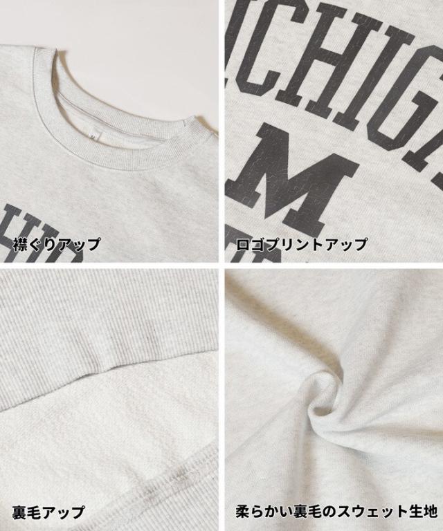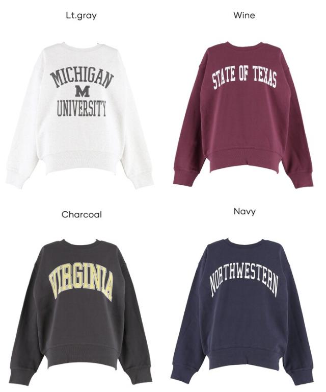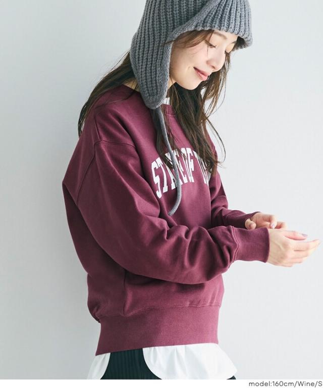 カレッジロゴが目を引く、シンプルながら存在感のあるスウェット。