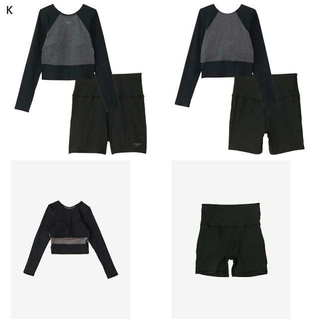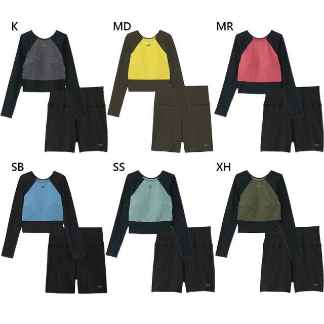 スピード レディース ミニマムロングスリーブ 水泳 ウェア 競技 フィットネス水着 ストレッチ UVカット 運動 スポーツ ブラック 黒 ブルー レッド 青 赤 イエロー グリーン カーキ 送料無料 speedo SFW22450