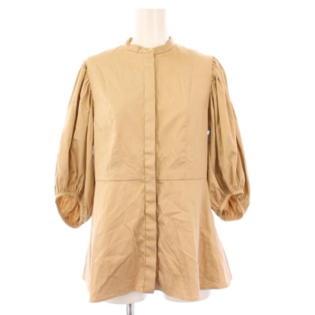 【中古】ユナイテッドアローズ C サテン バルーンスリーブブラウス シャツ 七分袖 バンドカラー 38 ベージュ