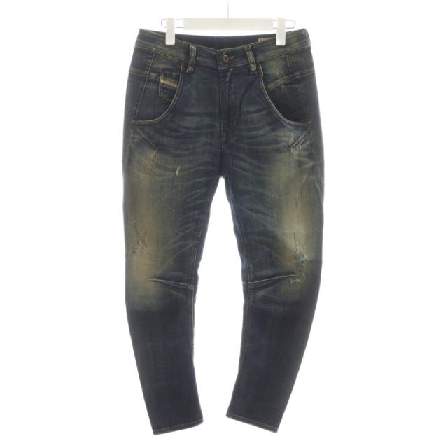 【中古】ディーゼル DIESEL FAYZA デニムパンツ ジーンズ ジーパン Gパン ダメージ加工 ロゴ W25 紺 ネイビー