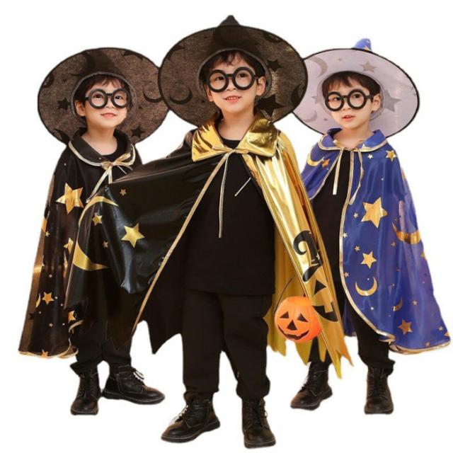 マントと帽子がセットになっており、男の子も女の子も魔法使いのようなスタイルに変身できます。