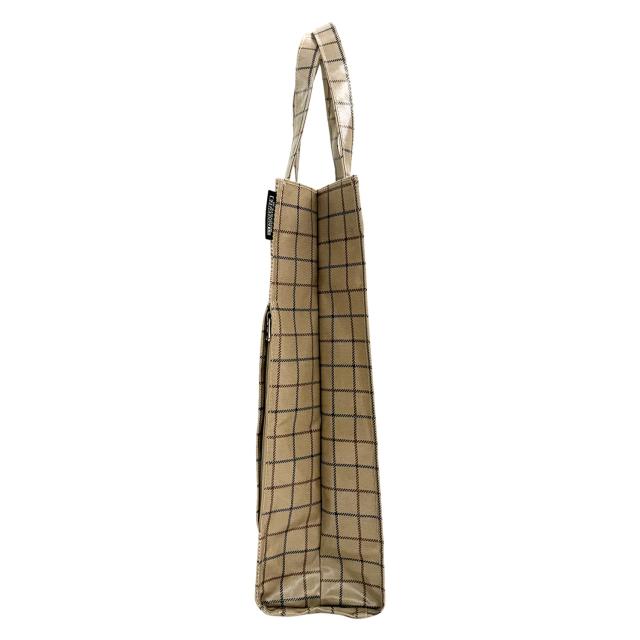 ヨーロッパ各国・各地域のデザインを意識しながらロマンチックな雰囲気を付加した、私の毎日に馴染んで寄り添うルートートの雑貨トート。習いごとやお仕事のサブ使いにぴったり。A4サイズがスマートにおさまるサイズです。ラミネートは汚れにくさ、拭き取りが容易。また、梅雨以外にも、豪雨や突然の雨の日も増えている中でのお出かけにも、安心してご使用いただけます。ノスタルジックな雰囲気のあるチェックプリント柄。落ち着いたカラーリングで、活躍の幅も広がりそう!A4サイズの書類や雑誌が入る「アーキャトル」。手に持っても腕に掛けても使いやすい持ち手。通勤、通学のサブバッグとして、レッスンバッグとしてもおすすめです。艶のあるラミネート加工生地。燃やしても有害物質の発生が少ないラミネート素材を使用しています。汚れや水滴が拭き取りやすいのもうれしいポイント。口元はマグネットホック開閉。たっぷりの箱マチで、ボトルなども入れられ、見た目以上の収納力。底板付きで、底面がたわまずきれいな形をキープしてくれます。内側のオープンポケットは、スマホや小物の指定席。出し入れスムーズ。