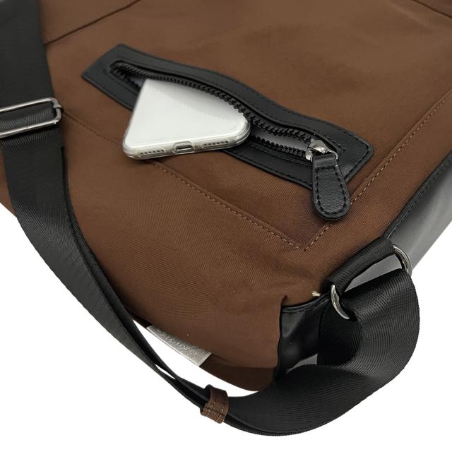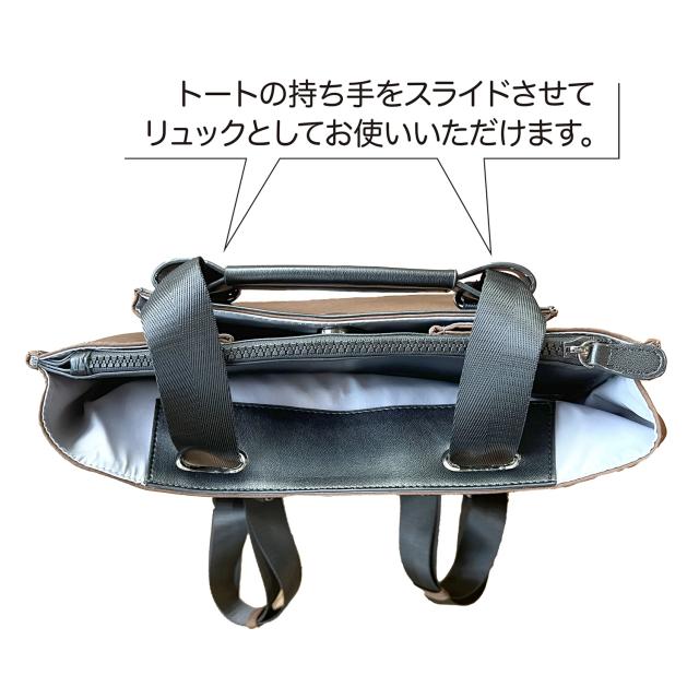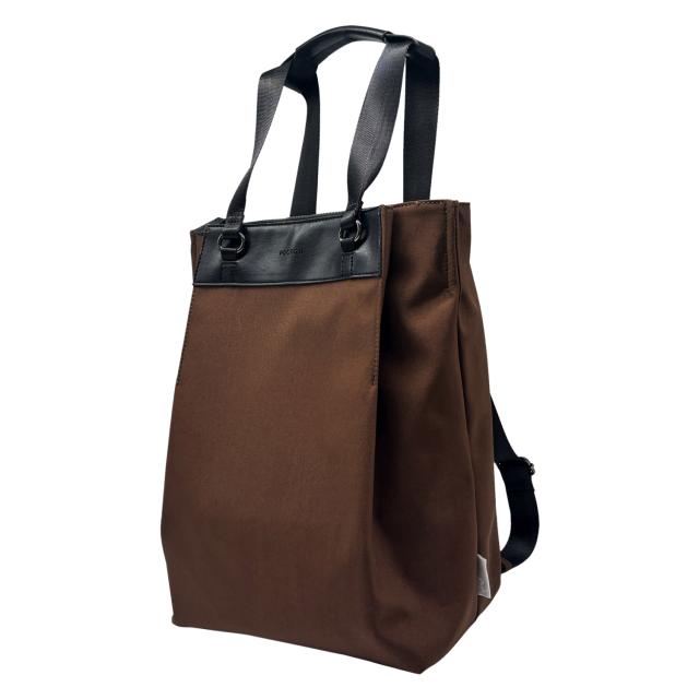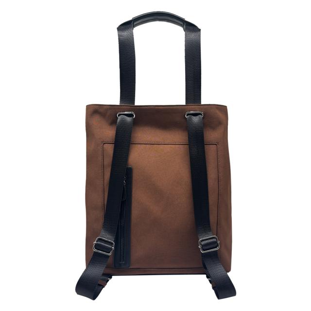 ルーポケットの良さを改めて実感していただけます。大きく前に開くポケットがまさにカンガルーのおなかのように開いて開閉スムース。13インチのPCが入る天面のファスナーポケット付き。場面に応じてショルダーを動かすと、リュックとしても使えるトートです。