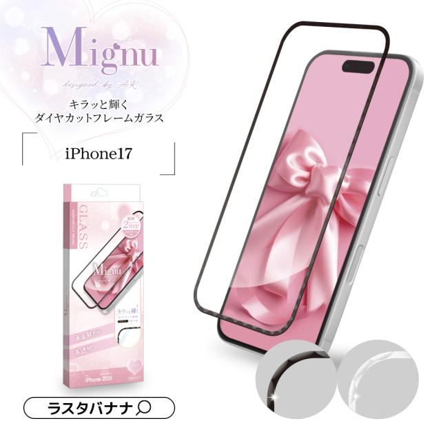 【送料無料】iPhone17 ガラスフィルム 全面保護 高光沢 高透明 クリア Mignu キラッと輝くダイヤカットフレーム 貼付革命 貼り付け革命 瞬間張り 失敗しない レボリューション 硬度10H アイフォン 保護フィルム ラスタバナナ FGD5130IP5A FGD5132IP5A