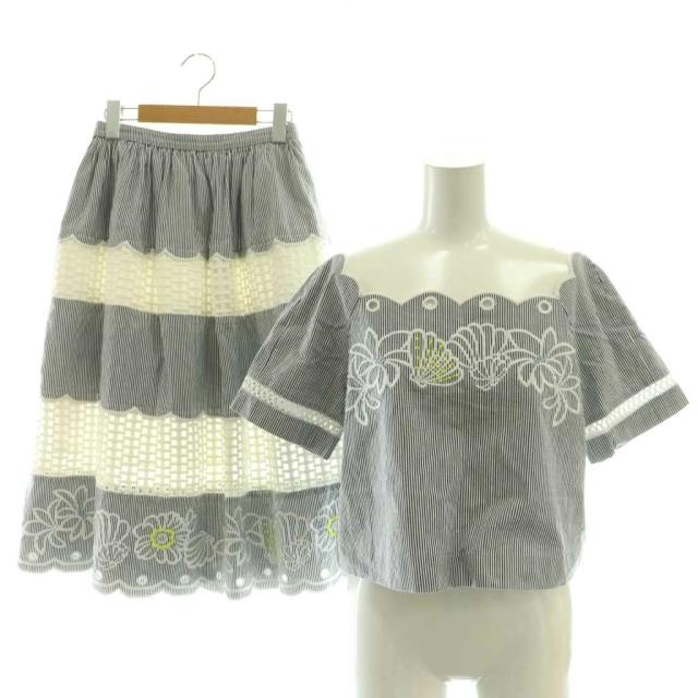 【中古】チェスティ Chesty ストライプマリン カットソー スカート セットアップ 0 1 紺 白 /CX ■OS レディース