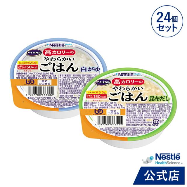 アイソカル 高カロリーのやわらかいごはん 100g × 24個セット(白がゆ・昆布だし 各12個)【ネスレ 介護食 おかゆ ごはん 介護食品 介護 レトルト 栄養補助食品 高齢者 国産精米 少量 高カロリーたんぱく質 舌でつぶせる】