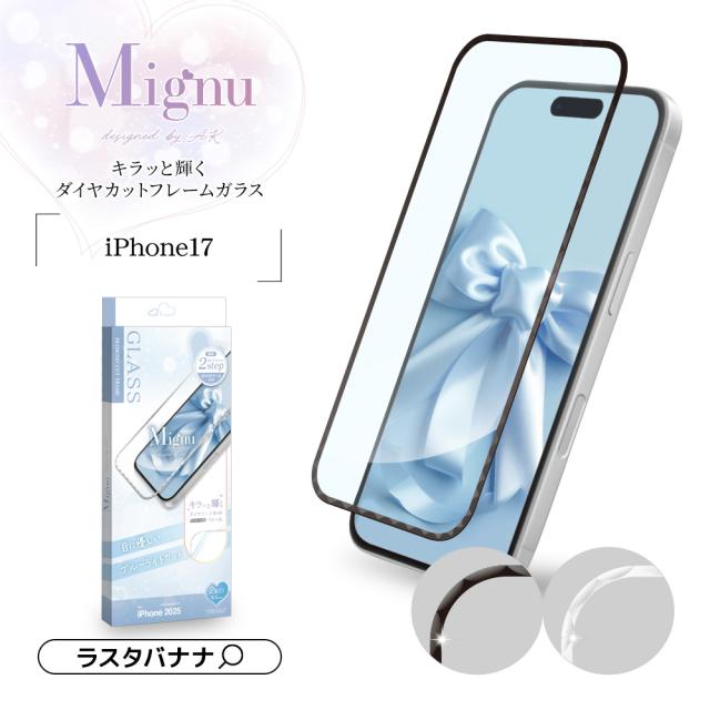 【送料無料】iPhone17 ガラスフィルム 全面保護 ブルーライトカット 高光沢 Mignu キラッと輝くダイヤカットフレーム 貼付革命 貼り付け革命 瞬間張り 失敗しない レボリューション 硬度10H アイフォン 保護フィルム ラスタバナナ FGD5131IP5A FGD5133IP5A