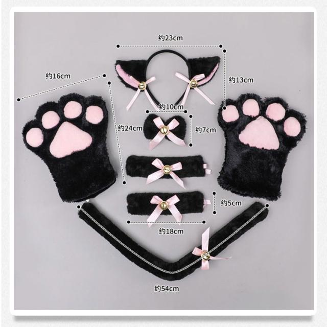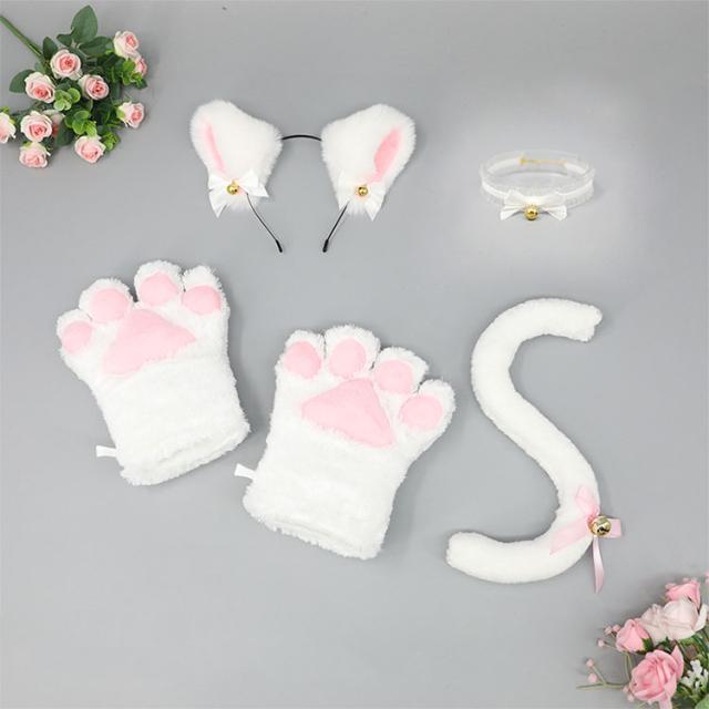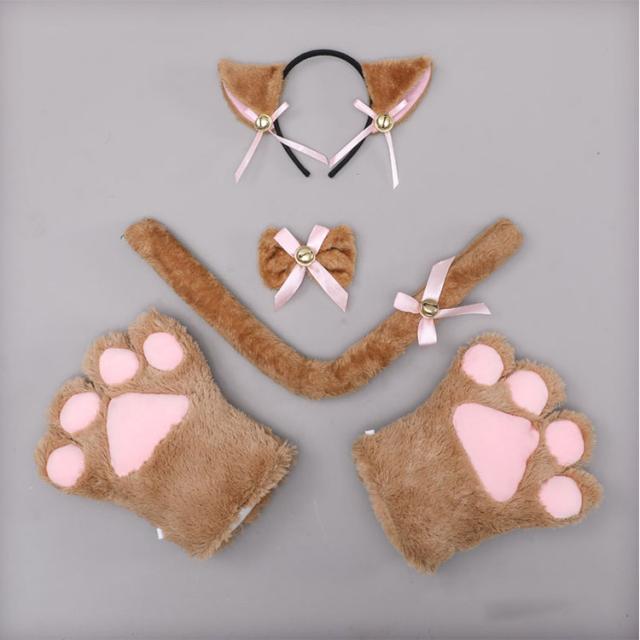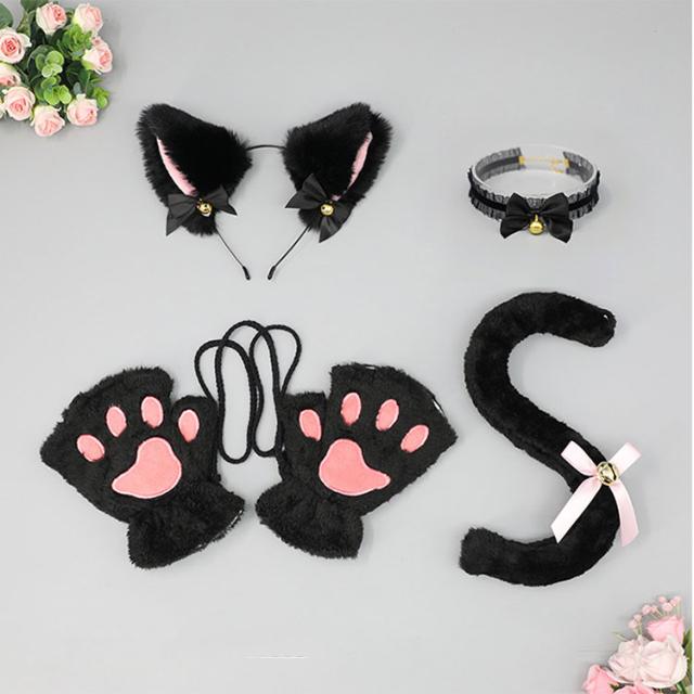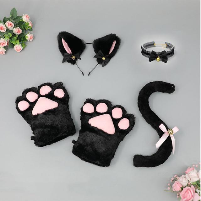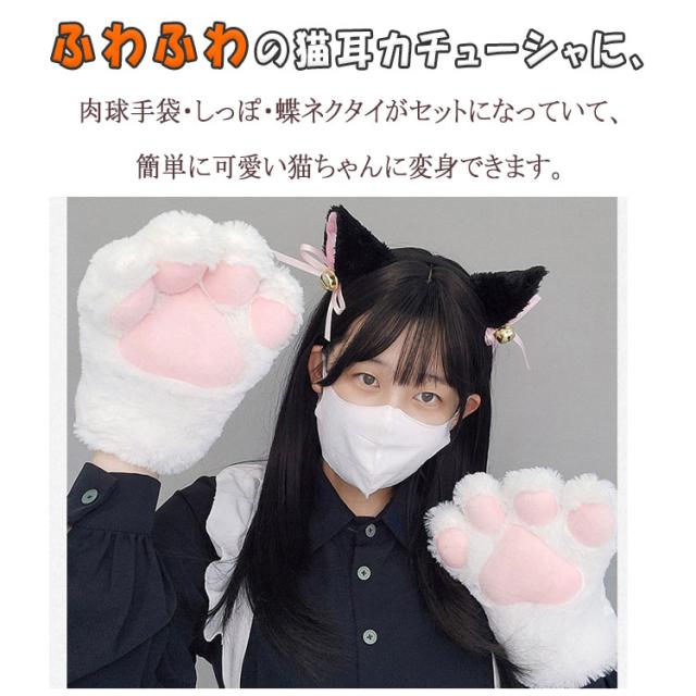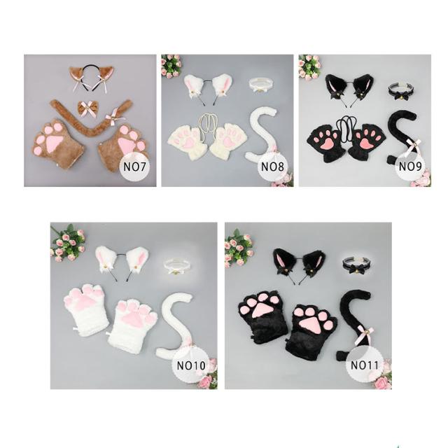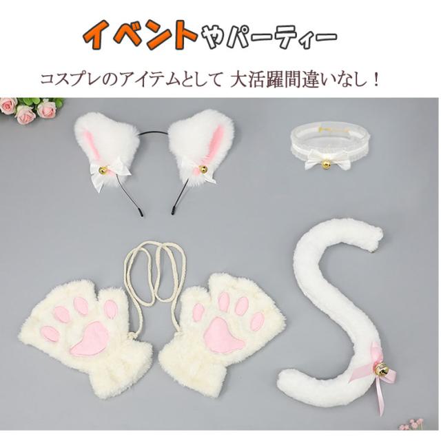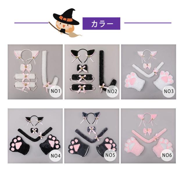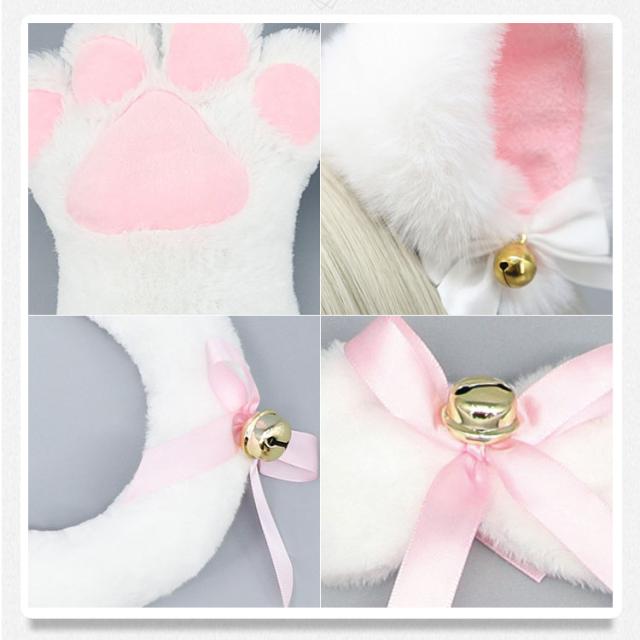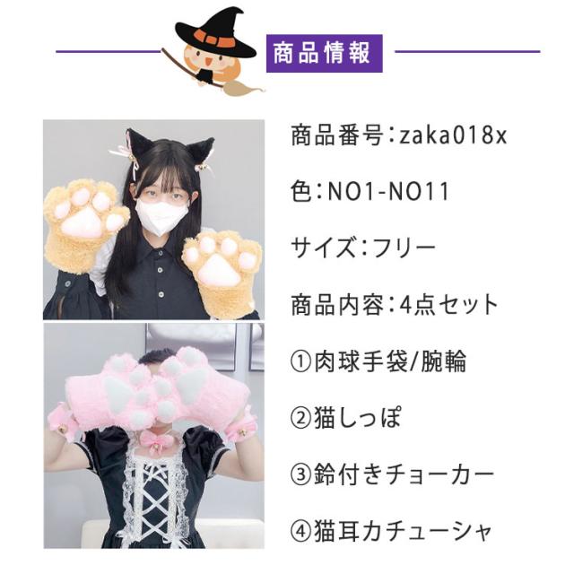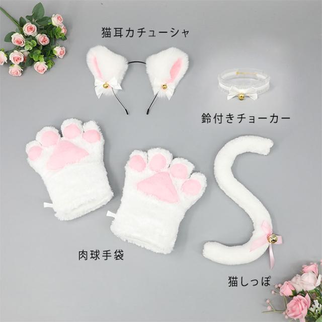 | 4点セット | 1.肉球手袋/腕輪 2.猫しっぽ 3.鈴付きチョーカー 4.猫耳カチューシャ |